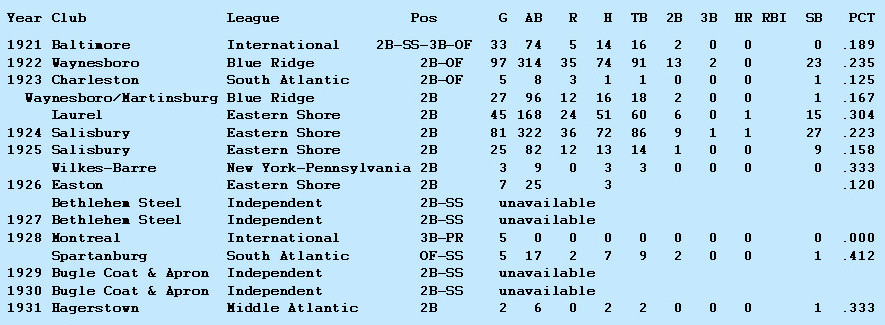 These are Jimmy Lyston's professional baseball career statistics.